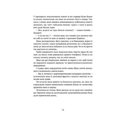 Жінка без імені, яка вирушила до Таїланду без купальника й жодного плану. Своє ім’я вона залишила вдома разом з розбитим серцем і роботою, яка довела її до повного виснаження. Тож тепер скуповує манго та їздить на рожевому велосипеді. Плаче від гострого соусу й самотності. Товаришує з геконами, знайомиться із чоловіками та заводить нових друзів, кожен з яких випадково повертає їй частинку втраченого.
