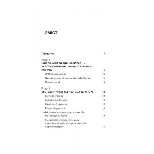 Герої книжки критикували комуністичну ідеологію та боролися проти безправ’я українців як нації. Їхньою зброєю стало слово, яке дошкульно било радянський режим у його чи не найболючіше місце — монополію на інформацію. Тож режим відповідав тюрмами, таборами й психіатричними лікарнями, але повністю знищити цей опір так і не зміг. Попри всі зусилля пропаганди та фактично фізичне знищення дисидентів, вони продовжували боротися і лякати радянську владу.