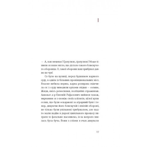 У центрі сюжету — молодий адвокат Євгеній Рафалович, який приїжджає в невеличке галицьке містечко і стає народним захисником. Там він зустрічає кохання своєї юності. Та колишня кохана перебуває у пастці нещасливого шлюбу із чоловіком-садистом: знущання і приниження тривають роками, і жінка, не маючи сил на втечу, у відчаї наважується на вбивство. І це стане лише початком подій, які сколихнуть сонне містечко.