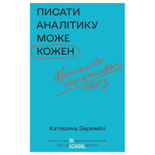 У цій книзі аналітикиня Катерина Зарембо та група дослідників Національного університету «Києво-Могилянська академія», Українського Католицького університету та Київської школи економіки привідкривають завісу над роботою аналітиків, розбираючи аналітичний текст від задуму та призначення до структури та оцінки його ефективності. Автори покажуть, як провести необхідний дослідницький аналіз, вибудувати аргументи, обрати стиль написання та не лише зацікавити, але й переконати свою аудиторію.