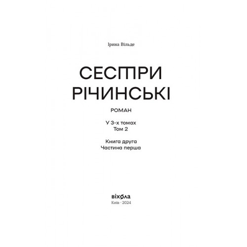 Віхола Сестри Річинські. Том 2., Ірина Вільде 978-617-8257-84-2 П’ять сестер після смерті батька опиняються один на один з реальним життям. У другій книзі дівчата намагаються зрозуміти, як вижити в цьому бурхливому морі. Радикальні вчинки, образи, невиправдані очікування, зрада найближчих — так не лише зовнішні обставини, але й самі стосунки стають викликом.