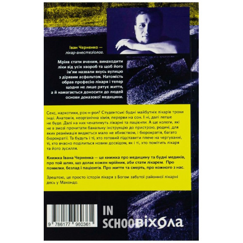 Віхола Сміх у кінці тунелю. Нотатки українського анестезіолога., Іван Черненко 978-617-7960-36-1 Секс, наркотики, рок-н-рол? Студентські будні майбутніх лікарів трохи інші. Анатомія, неорганічна хімія, перерви на сон. І ні, далі легше не буде. Далі на них чекатимуть лікарні та пацієнти. А ще колеги, які не в змозі прочитати банальну інструкцію до пристрою, родичі, для яких реанімація видається мало не вбивством, і бюрократія, багато бюрократії. Та будуть і ті, хто готовий підставити плече на чергуванні, ті, хто вчасно поділиться новим досвідом, як і ті, хто помітить лікаря та його зусилля.