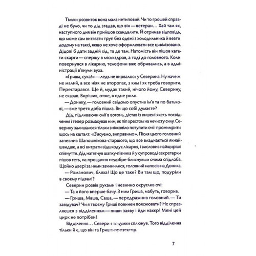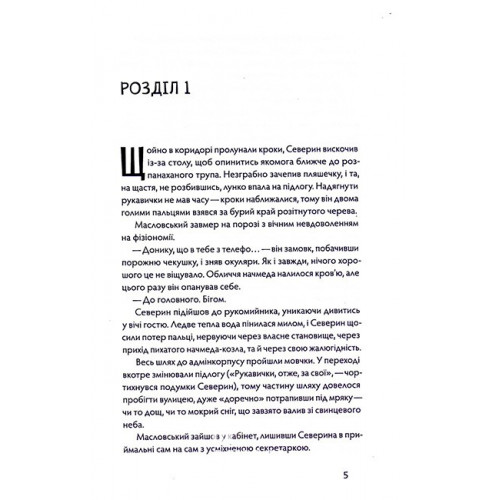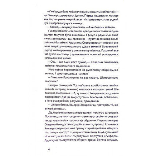 Віхола Танці з кістками., Сем'янків Андрій Миколайович 978-617-7960-67-5 Проста, на перший погляд, історія про патологоанатома-невдаху. Северина не цінують на роботі й мало платять, з особистим життям чоловіка відбувається щось незрозуміле, самооцінка на нулі. Тож перебуваючи практично на дні, він одразу ж хапається за можливість підзаробити. Так, пропозиція не зовсім легальна, так, навряд чи можна чекати чогось доброго від ринку трансплантації органів, але так спокусливо нарешті влаштувати собі забезпечене життя. Зрештою, Северин має забрати в уже мертвих людей якусь дрібничку, те, що їм і так не потрібно. Поки що у мертвих людей, поки що дрібничку.