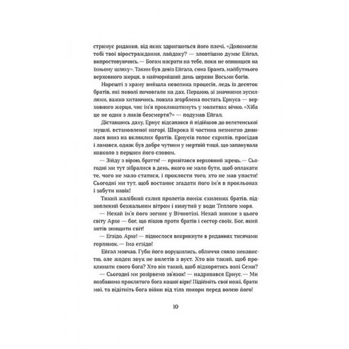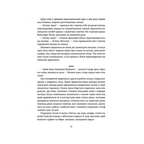 Цей світ безжальний. У хащах Пралісу чатують ульфи-перевертні, відьми з чорними заточеними зубами, мохоликі — їхні напівмертві прислужники, а також живе народ, у якого відібрали пам?ять. У містах проміж шльондр, грабіжників і покидьків живеться не краще. Люди моляться Семи богам, а восьмий, бог війни Архе, замкнений у темниці на краю світу, з якої досі шукає вихід.
