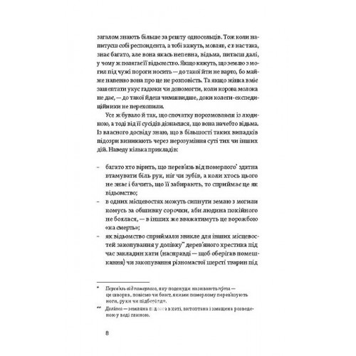 Автор розповідає, як за уявленнями наших предків відьми набували надприродних здібностей, застосовували і передавали «силу», помирали; пояснює, як образ лихої чарівниці став невіддільною частиною нашої традиційної духовної культури.