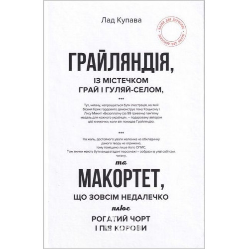 Побував і автор у своїй. А відбувались події в Грайляндії казковій країні, що між Кирилівкою, де народився Тарас Григорович, і Чернечою горою, де він похований, а точніше - між містечком Грай і Гуляй-селом, поблизу яких своєю чергою розташувався Макортет, на якому саме й водиться всіляка нечисть.