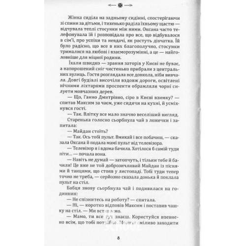 Видавництво "Зелений Пес" Крізь небуття., Рута Марія 978-966-279-134-1 Крізь об’єктив камери Максим встиг побачити снайпера... Старенька Ганна ніби наново переживала події свого дитинства... А десь в іншому часі, далеко на захід від Києва, молодий боєць і його кохана разом зустрічали сонячний ранок... Ніхто з них ще не знав, що примхлива доля змінить їхні життя назавжди, озиваючись навіть крізь небуття. В історичному романі Марії Рути час єднає у химерному плетиві воїнів УПА, радянських військових та їхніх нащадків, й усі ниточки сходяться до точки неповернення, точки усвідомлення: час нарешті засвоїти невивчені уроки історії. В основу роману покладено реальні події.