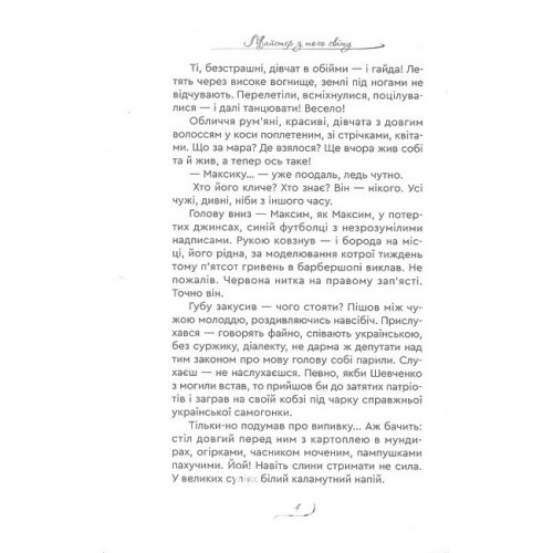 Видавництво "Зелений Пес" Майстер з того світу., Надія Вальчук-Остряниця 978-966-279-261-4 Чи замислювались ви, як татуювання може змінити життя людини, зробити її сміливішою, привабливішою, цілеспрямованішою версією себе? Чи, може, справа не в татуюванні, а в майстрі, який вирішив почати все з чистого аркуша? Загадковий тату-майстер Максим, наділений родовим даром змінювати життя своїх клієнтів за допомогою незвичайних малюнків на тілі: войовничий спартанець, витончені маки, владолюбний вовкодав, величний воїн світла - розкривають у своїх власників нові риси характеру та провокують нові можливості. Містика, що з'явилась у житті звичайного хлопця кардинально змінює його.