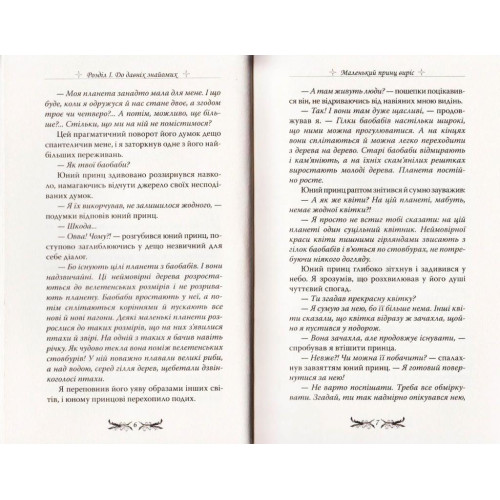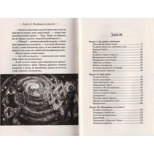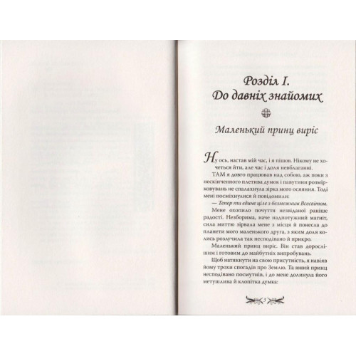 Видавництво "Зелений Пес" Мандри юного принца 978-966-279-126-6 ілософська повість «Мандри юного принца» побудована як продовження казки «Маленький принц» Антуана де Сент-Екзюпері. Головний герой виріс і під впливом Антуана, який виконує роль ангела-охоронця, знову подорожує в пошуках мрії, але тепер це — подорож за досвідом. Образи героїв казки розкриваються через призму їхнього внутрішнього світу та інтересів і не потребують опису зовнішності. Будь-яка зовнішня риса служить для підсилення їхніх внутрішніх характеристик.