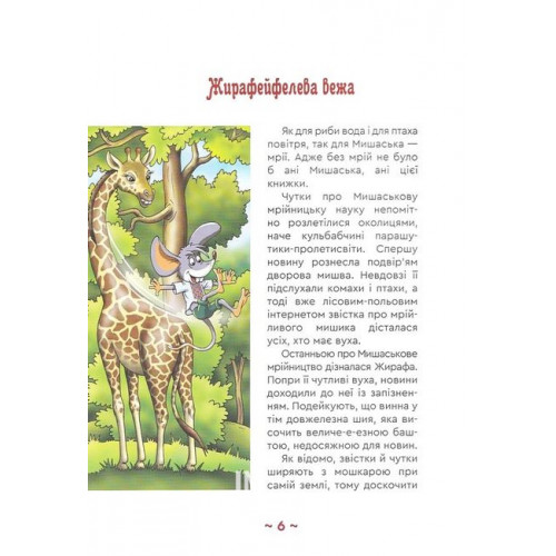 Видавництво "Зелений Пес" Мишаськів догоридриґ., В'ячеслав Купрієнко 978-966-279-238-6 Як для риби вода і для птаха повітря, так для Мишаська — мрії. Адже без мрій не було б ані Мишаська, ані цієї книжки. Чутки про Мишаськову мрійницьку науку непомітно розлетілися околицями, наче кульбабчині парашутики-пролетисвіти. Спершу новину рознесла подвір'ям дворова мишва. Невдовзі її підслухали комахи і птахи, а тоді вже лісовим-польовим інтернетом звістка про мрійливого мишика дісталася усіх, хто має вуха.