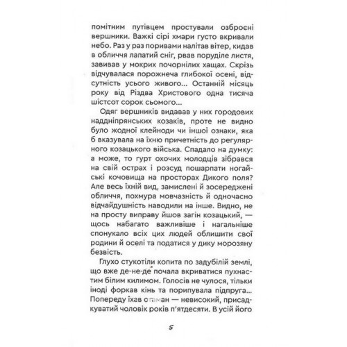 Сюжет наповнений містичними збігами і знаками, водночас автор достовірно змальовує побут і звичаї не лише українського, а й інших народів, що проживали тоді на території україни та за її межами.