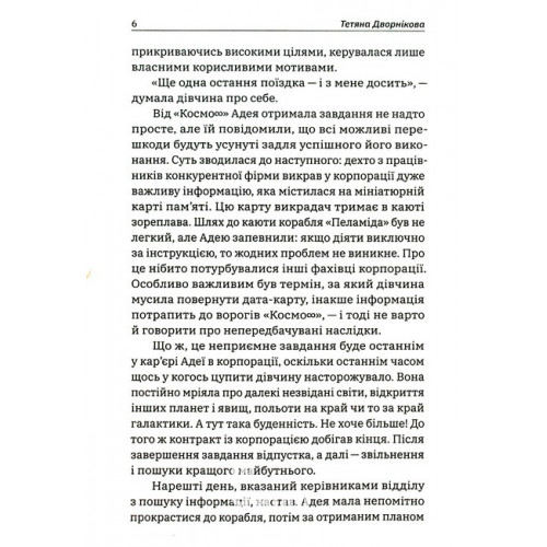 Головна героїня, дівчина на ім’я Адея, отримавши завдання за будь-яку ціну дістати дата-карту з надважливою інформацією, опиняється на межі викриття. Власник карти випадково стає свідком, власне, пограбування і намагається повернути своє. Щиро переконана, що її переслідує саме злочинець, який сам поцупив карту, Адея обходить досвідченого й вправного капітана космічної флотилії Річа Дангора. І як же здивується капітан експедиційного зореплава, коли його помічницею на чергову місію назначать саме Адею!