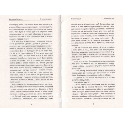 Видавництво "Зелений Пес" У пошуках щастя., Катерина Палагута 978-966-279-231-7 Коли здається, що світ збожеволів, життя закінчилося і все летить у прірву чи чорту під хвіст; коли люди, яким довіряв, не просто зрадили, а розтоптали всі твої цінності, стерли їх у порох; коли ставиш на собі хрест, бо стонадцятий раз надія на просте людське щастя розбивається на дрібні скалки; коли вже не чекаєш нічого доброго; стається щось, що все змінює, перевертає з голови на ноги: випадкова зустріч, вчасно підхоплений вірус, підкинута коробка кошенят, знайдений на вулиці телефон чи загублений пес, омріяні чи випадкові дві смужки на тесті... І враз отакі-от дрібнички стають цеглинами, з яких вибудовується міцний міст у світле майбутнє! Для закоханих у життя.