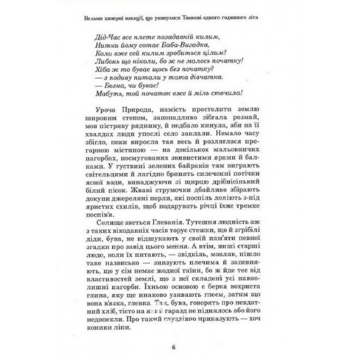 Видавництво "Зелений Пес" Вельми химерні вакації., Голександер Шепеленко 978-966-279-210-2 Глеванія... Село, сказати б, виїмкове: щокрок настопчеш на котрусь приведенцію. Тим-то усяк зайдисвіт має змогу необачно ускочити у хараман. Та не гарма-дарма, а через отих химерників, що невиводний каламут учиняють. Поринувши у онеє дієписання, читач бачитиме калейдоскопічне розмаїття заділкуватих й авантурничих пригод, що були укинулися мешканцям сеї весі. Нестак теє вигадка, а радше компонування з подій довіряних, поспіль оправлених у химородь. Головно йдеться про дивочні літошні вакації хлопчика Тимка, про його начудну блуканину ин-якими світами й про штукарські вчинки строкатої кумпанії, до якої він причинився. Закрутисті припадки їхнього побиту деинде пересипані мализною философії, історії й популярної науки, присмачені незлим українським гумором. Дієпис бучно галузиться, даючи змогу читачеві, як матиме охоту, мислено домалювать сьому вітистому дереву ще й набавних гілок. Книга пропонує висліджувать світ, глядячи широко, позбувшись упереджень й звичаєвого розсуду.