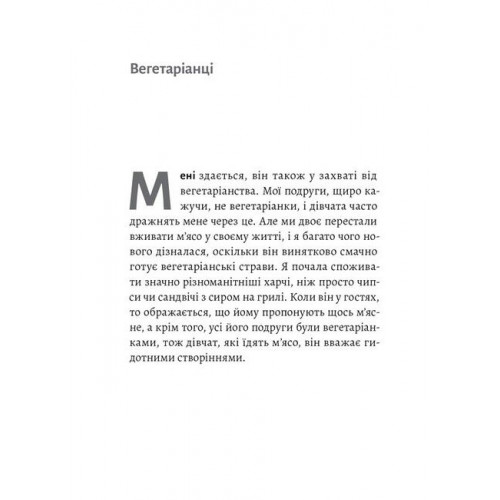 Він красивий і начитаний, ідеально готує збалансовані вегетаріанські страви та читає латиною. У нього тільки один недолік – він аб’юзер. Лілья не помічає його маніпуляцій, підкоряється сексуальним вимогам і сідає на сувору вегетаріанську дієту, знищуючи саму себе.