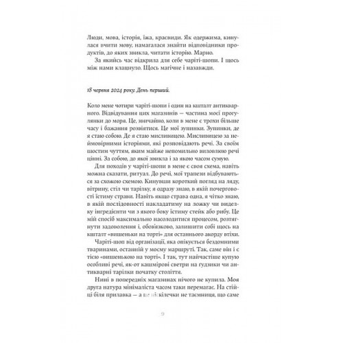 «Мова речей» — у формі щоденника, писаного в еміграції. Пізнання світу через символічне значення речей — яке воно? Кожна придбана річ чи отриманий подарунок — це певний сенс і символ, який може багато розказати. Чи знайде героїня серед цих речей приховані сенси, важливі для неї?