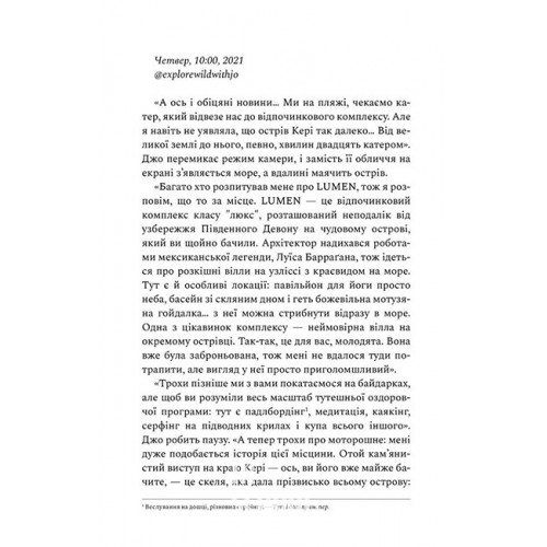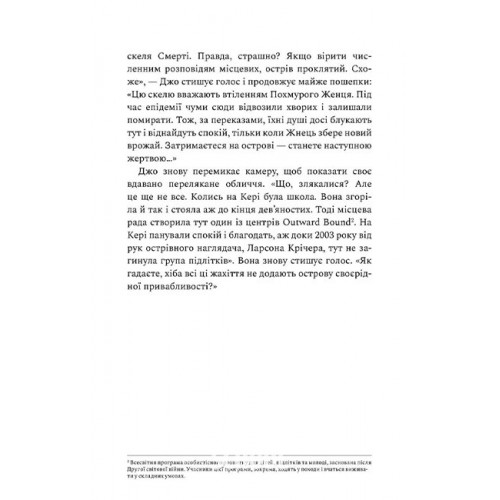 Що довше Елін перебуває на острові, то більше таємниць зринає навколо. І коли під водою знаходять ще одну жертву, вона починає підозрювати, що всі чутки про цей острів — правда.