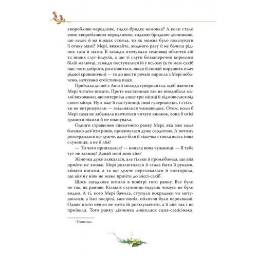 Рідна мова Таємний сад., Френсіс Бернетт 978-617-8512-66-8 У безберегому книжковому морі не так уже й багато знайдеться життєствердних книжок, які однаковою мірою цікаві й дорослим, і дітям. Такою перлиною світової літератури, заради якої варто поринути в бездонні глибини письменницької фантазії, є книжка знаменитої англійської авторки Френсіс Бернетт «Таємний сад» (1911).