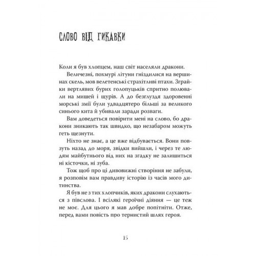 Рідна мова Як приборкати дракона., Крессіда Ковелл 978-617-8603-31-1 Ви, може, не знаєте, та коли інші народи приручали собак, коней, буйволів... вікінги підкорювали драконів. Однак юний вікінг спершу мусив упіймати собі дракона. Це було непросто. Потім — приборкати його, а це ще складніше. Усе разом називали посвятою в драконоборці, або випробуванням вогнем. Того, хто його не проходив, виганяли з племені.