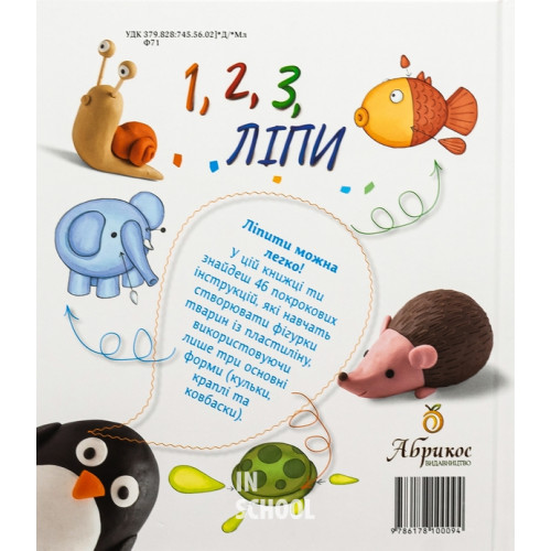 1,2,3 Ліпи Тепер можна не тільки читати, а ще й навчатися. Із задоволенням. Ще більше ідей, щоб захопити увагу дитини й відволікти від гаджетів.«1, 2, 3, Ліпи» — 46 покрокових інструкцій для ліплення з пластиліну.Зліпіть понад 40 фігурок з кульок, крапель та ковбасок.З радістю ЛІПІТЬ — діткам ВТІХУ ПОДАРУЙТЕ.