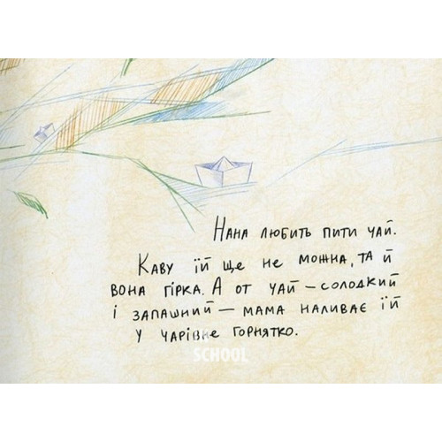Для кожного чаю у книзі «Чарівне горнятко» у татуся в запасі своя особлива історія: для чорного – про слонів, для трав’яного – про курчаток, для зеленого – про драконів. У горнятку Нани виникають неймовірні персонажі, оповідки про яких закінчуються з останнім ковтком чаю.