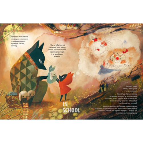 Рідна мова Червоний вовчик., Амелі Флеше 978-966-917-695-0 Давно колись жила собі мама-вовчиця. Одного разу відрядила вона вовченя віднести кролика до бабусі: та зовсім не мала зубів і була надто старенькою, щоб полювати. Дорогою вовчик мусить остерігатися лихих людей – жахливого мисливця та його доньки. Але, мандруючи, маленький вовчик страшенно зголодніє і, не втримавшись, з’їсть кролика. Збентежений і присоромлений своїм вчинком, він наївно піде за милою дівчинкою, що розкаже йому історію своєї родини: про доброго мисливця і його дружину, яку нібито з’їли жорстокі вовки…
