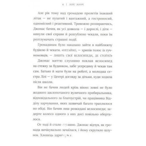 Читаріум Хранитель., Лоїс Лоурі 978-617-7329-43-4 Сюжет книги «Хранитель» розповідає про ідеальний світ хлопця Джонаса, у якому все прекрасно, адже знаходиться під повним контролем. В цьому світі немає страху, соціальної нерівності, болю, безробіття і конфліктів. Тут дітей народжують спеціально призначені люди, а потім немовлята розподіляються по сім’ях. Кожна людина отримує своє призначення, якому має слідувати все життя. А усі інші вибори особистості обговорюються громадою.