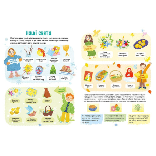 Справжні свята. Путівник для найменших 978-617-7877-65-2 У КНИЗІ ПОДАНО ІНФОРМАЦІЮ ПРО СВЯТА, ЯКІ ВІДЗНАЧАЮТЬСЯ ВПРОДОВЖ УСЬОГО РОКУ!Пориньте у святковий світ України разом із книгою «Справжні свята. Путівник для найменших»!Протягом довгих століть українцям насаджувалися чужі традиції святкування. Сьогодні ж, як ніколи, важливо повернутися до нашого справжнього святкового світу — надзвичайно багатого та цікавого. Ця книга розповідає про те, як насправді наші предки відзначали відомі свята протягом усього календарного року. Разом із нею найменші читачі… дослідять історію відомих свят і зрозуміють, наскільки давніми є їхні традиції;дізнаються, які страви готували до столу українці багато століть тому;познайомляться зі справжніми українськими святковими персонажами, піснями та символами;зрозуміють, чому нещодавно змінилися дати відзначення улюблених свят.