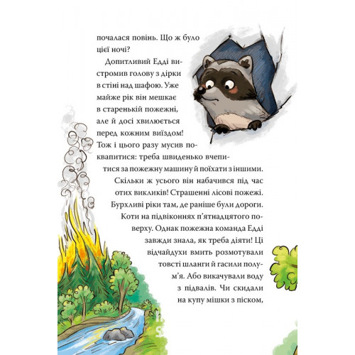 Що це за сірий пухнастий суперпожежник, який обожнює печиво? Та це ж єнот-полоскун Едді! Здавалося б, зовсім недавно він ласував смаколиками в пожежні. А за мить уже опиняється в незнайомому лісі, де раптово спалахує вогонь. Головне — не панікувати! Едді разом з лісовими звірятами докладають усіх зусиль, щоб погасити полум’я.