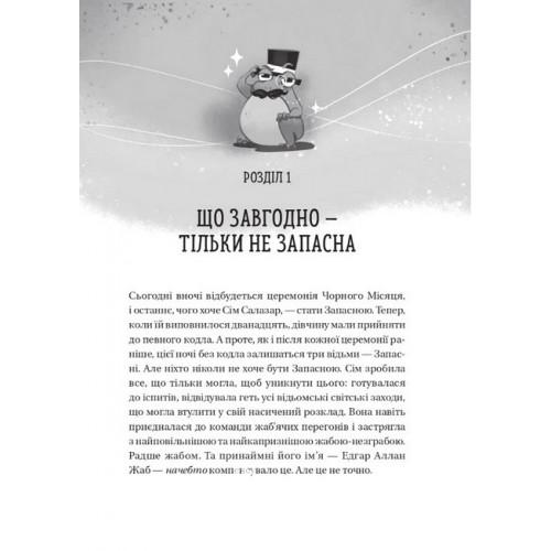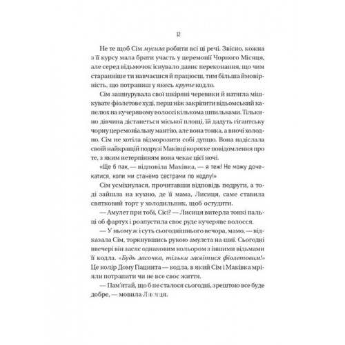 Відьмочки. Книга 1., Керолайн О'Доног'ю 978-617-17-0766-5 Щороку в чарівному містечку Вмійворон відьмочки беруть участь у церемонії Чорного Місяця. І дванадцятирічна Сім не може дочекатися, коли вона ввійде у наймогутніше кодло та стане повноцінною відьмою. Вона зробила все, що могла, — готувалася до іспитів, відвідувала всі відьомські світські заходи. Але в ніч церемонії на очах у всього міста відбувається те, чого вона найбільше боялася… Єдиний вихід із цього становища — об’єднатися відьмочкам та спільно досягнути успіху. Тоді їхнє кодло набуде сили, а ні, то вони назавжди перетворяться на жаб. Чи зможе дружба стати наймогутнішою магією?