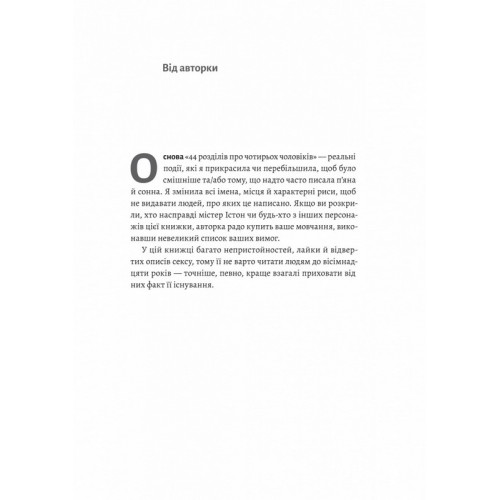 Видавництво "Лабораторія" 44 розділи про чотирьох чоловіків (м'яка обкладинка)., Бібі Істон 978-617-8299-25-5 Шкільні психологи не повинні писати книжки про секс. Це вважатиметься «неетичним» і «злочином, за який можна звільнити». На щастя, етика ніколи не була моєю сильною стороною.