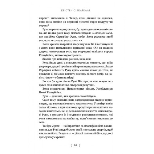 Видавництво "ARTBOOKS" Безсердечний мисливець., Крістен Сіккареллі 978-617-523-290-3 Підступнішим за відьомство може бути лише… кохання.Тієї ночі, коли життя Руни змінилося назавжди, вулицями лилася кров. Тепер, після нищівної революції, відьми з могутніх правительок перетворилися на вигнанок, за якими безжально полюють через їхню магію. Тепер Руні треба приховувати своє справжнє єство. Удень вона видає себе за поверхову молоду світську левицю, а вночі стає Багряною Міллю, відьмою-месницею, яка рятує подібних собі від страти.Коли одне визволення не вдається, Руна вирішує дістати вкрай потрібну інформацію, закрутивши роман зі славнозвісним Ґідеоном Шарпе, безкомпромісним і вірним революції мисливцем на відьом. Він підозрює, що Руна і є Багряною Міллю, а тому підігрує їй. Хто з них переможе й досягне бажаного? І що трапиться, коли фальшива закоханість переросте в дещо більше?