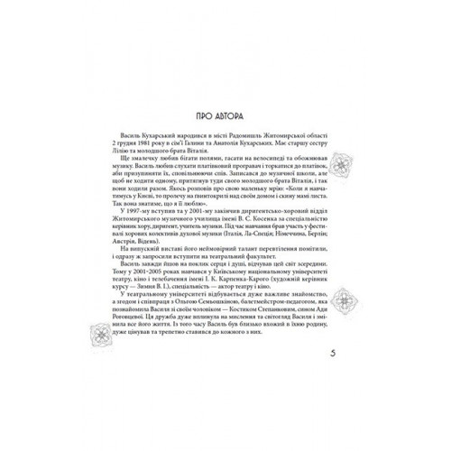 Видавництво "Зелений Пес" Чудернацький світ Василя Кухарського 978-966-27-9309-3 Що ми залишаємо після себе? Ця книга — не просто збірка віршів. Це інтимний світ Василя Кухарського, зафіксований у словах, світлинах та сенсах. Тут, на сторінках, живуть Його усмішки й сум, вагання та любов, жарти й війна, ніжність і невловима істина, а понад усе — пристрасть до життя та кохання. Його вірші народжувалися вночі й відлітали у світ із першим променем сонця. Кожне слово, кожен знімок наповнені сутністю ВасіКуха — живою, справжньою, нефальшивою. Все тут дихає Ним.