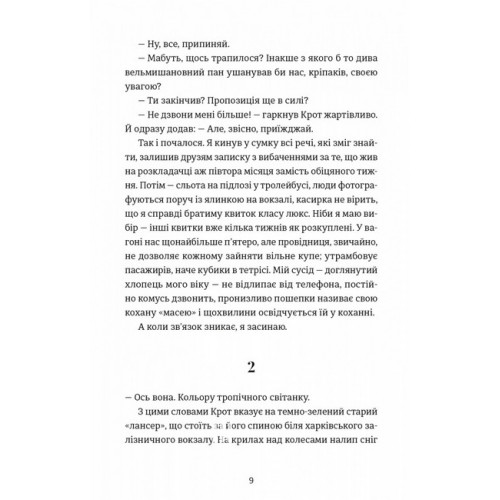 Видавництво Старого Лева Кінотеатр «Космос». - Влад Нед 978-966-448-603-0 Коли ти працював на телебаченні у Києві, це здавалося типовим життям креативного класу. Та раптом тебе витурили з роботи й усе полетіло шкереберть. Доводиться повертатися у рідний Харків, де з допомогою давніх друзів вдається влаштуватися працювати кіномеханіком у старий кінотеатр на околицях. Крутити фільми у «Космосі», що ледь зводить кінці з кінцями, — зовсім не робота мрії, та іншої однаково поки що немає. Згодом стає зрозуміло, що з кінотеатром не все так просто, і пожежа, яка тут трапилася, не випадкова.
