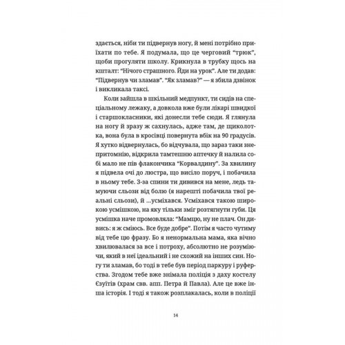 Видавництво Старого Лева Лемберґ: мамцю, ну не плач. - Олена Чернінька 978-966-448-260-5 «Він — той, хто символізує собою покоління. Розумний, талановитий, сміливий. Цим хлопцем можна пишатися», — говорить про Лемберґа один із військових. Лемберґ і справді є представником нового покоління українців, для яких Україна — не просто слово, моральні цінності — не порожній звук, а життєвий принцип. І заради цього можна зважитись ризикнути життям. Це зробив Лемберґ, це зробили хлопці й дівчата, які замість улюбленої роботи узяли до рук зброю, а родиною їм стали бойові побратими. Ті, хто пішли на війну добровольцями, схожі між собою. Тому хтось упізнає в цій книжці свого сина, чоловіка, брата… А як тепер жити саме їм — дружинам, мамам, найріднішим? Як долати щоденну тривогу і біль, який, здається, проникає в кожну клітину тіла? Олена Чернінька ділиться своїм досвідом мами Воїна, який на час написання цієї книжки — зниклий безвісти. Вона ділиться досвідом переживання, болю, переосмислення, пошуку сенсів, світла і віри.
