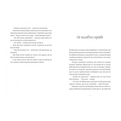 Видавництво Старого Лева Найкраще немодне заняття. - Любов Загоровська 978-966-448-405-0 Коли в Україні почалися перші бойові дії, коли ворог захопив частину української території, величезна кількість людей об’єдналася у волонтерському русі. Поряд із дорослими працювали і продовжують робити величезні добрі справи юні волонтери. Ця книга розпочалась як розповідь про них. Проте війна триває. І тепер стосується вже не окремих територій, а усієї країни. Діти, про яких написано у перших розділах цієї книги, виросли і чимало з них пішли захищати незалежність України. Їм на зміну підросло нове покоління дітей, які народилися в часі війни, які навчаються у бомбосховищах і які продовжують працювати, аби допомагати нашим Збройним Силам.