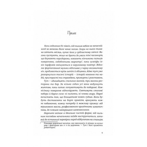 Книголав Ніч у “Східному експресі”. - Вероніка Генрі 978-617-8439-20-0 Кожна поїздка «Східним експресом» — це маленьке життя. Поки пасажири займають свої місця та роблять перші ковтки шампанського на шляху з Лондона до Венеції, потяг мчить уперед і стає свідком п’яти драматичних та романтичних історій.