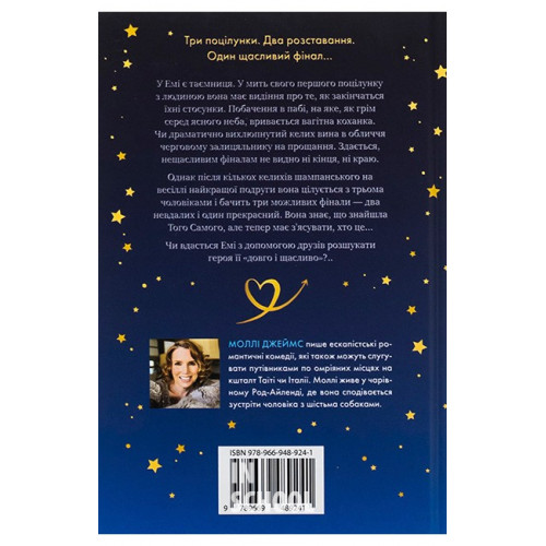 КМ-БУКС Почати з кінця. - Моллі Джеймс 978-966-948-924-1 Жінки з роду Емі мають особливий дар… Чи прокляття? Річ у тім, що в момент першого поцілунку з чоловіком вони бачать видіння, чим закінчаться їхні стосунки. З одного боку, це зручно - нема потреби гаяти час на "не тих" людей, але що, коли все життя так і мине у пошуках Того Самого?..
