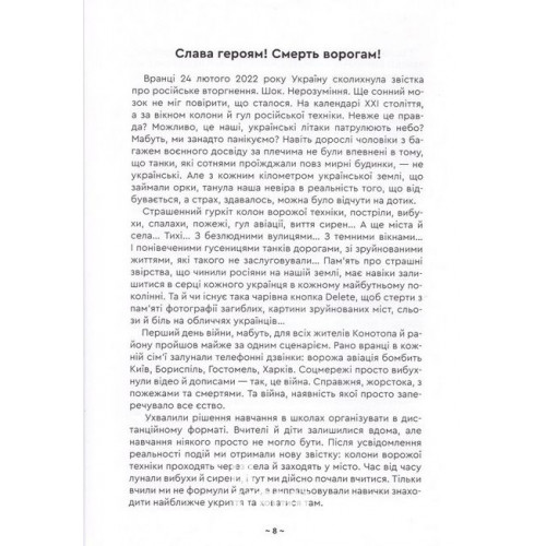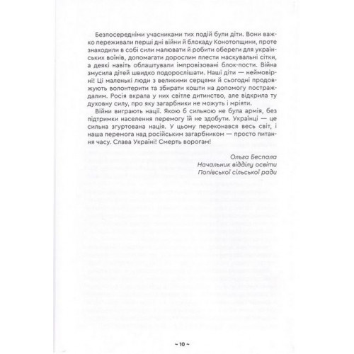 Ця книга історія війни очима дітей і вчителів Попівської громади Конотопського району. В прозі, поезії і малюнках, на кожній сторінці відчувається стійкість і надзвичайна сила духу.