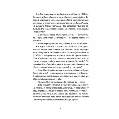 Марта Кравченко — українська художниця-аристократка — відчайдушно виборює власне право творити, любити, бути тією, ким покликана бути. Кохання до Майстра та захоплення мистецтвом, що зродилися ще в серці юної дівчини, визначили й означили той шлях, яким вона обрала йти. Утім, зустріч зі скульпторкою Анною та її кузеном — чуйним лікарем Антонієм — додає нових барв до Мартиного життя, сповненого гірких спогадів, які гріють та обпікають водночас… Події цієї поетичної й майже казкової оповіді розгортаються поміж Києвом і Віднем, Поділлям і Карпатами наприкінці ХІХ сторіччя, міцно сплітаючи водно правду й вигадку — як у кожному апокрифі.