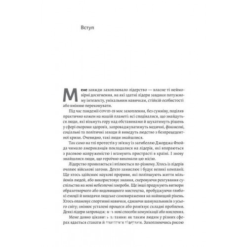 «Бути лідером» — унікальна можливість дізнатися, про що думають, чим керуються та як живуть лідери. Вона надихає не відступати, не здаватися та не зневірюватися у собі та своїх цілях. Книга наповнена надзвичайними історіями новаторів та агентів змін.