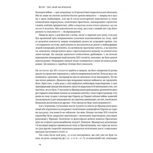 Тоні Джадт, інтелектуал та історик, сміливо охоплює різні аспекти тогочасся й встановлює провокаційні зв’язки з сьогоденням, чіпляючись за ті теми, які ризикували піти в небуття з тих чи інших причин. Завдяки такому переосмисленню забутого від підводить нас до низки тез, які нам необхідно знати зараз, аби винести з буремного ХХ століття важливі уроки.