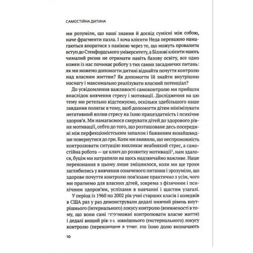 Самостійна дитина: як навчити дітей упорядковувати власне життя., Вільям Стіксрад, Нед Джонсон 978-966-982-836-1 Надто любите свою дитину й тому не сварите її через домашку? Ваша дитина має проблеми з навчанням, синдром дефіциту уваги, страждає на гіперактивність або розлади аутистичного спектру? Намагаєтеся навчити чадо самоконтролю, але марно? Добре, що є ця книжка, бо ви мали б багато клопоту та дитячих сліз! Автори розповідають, як батьки можуть допомогти своїм дітям уникнути стресу й не опустити руки. Їхні поради допоможуть дитині стати самостійною та підійти до межі дорослого життя (перед вступом до коледжу чи університету) з багажем необхідних знань та навичок. Усі історії, наведені в цій книжці, цілком реальні. Це історії дітей, батьків і педагогів, з якими авторам доводилося працювати протягом минулих років. Застосування наведених у книжці методик допоможе вашій дитині навчитися самостійності без істерик, ультиматумів та батьківського пресингу.