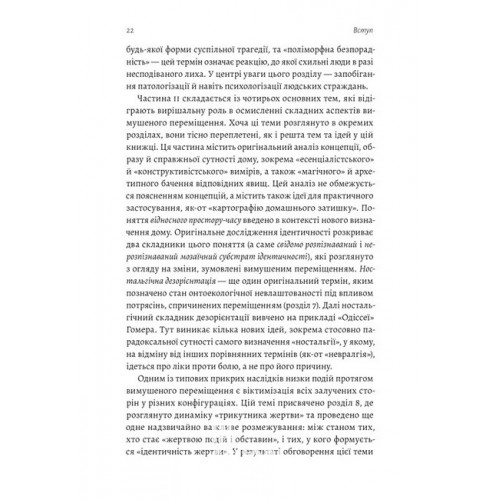 Опираючись на людський досвід, автор занурюється у ключові поняття теми: дім, ідентичність, ностальгійна дезорієнтація, травма тощо. Завершує книгу Пападопулос практичними порадами для тих, хто працює із вимушено переміщеними особами, або сам опинився у цих непростих умовах.