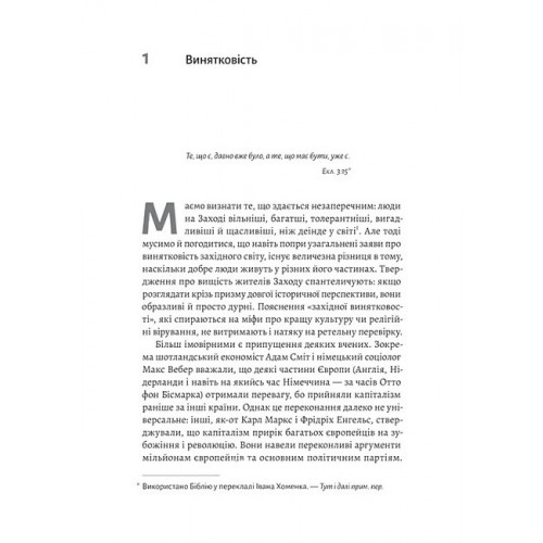 Ідея західної винятковості — уявлення про те, що європейські цивілізації є вільнішими, багатшими і менш жорстокими — є поширеною і потужною політичною концепцією. В одних суспільствах це стало джерелом прагнення до миру і процвітання, а в інших — етнічних чисток і хаосу.