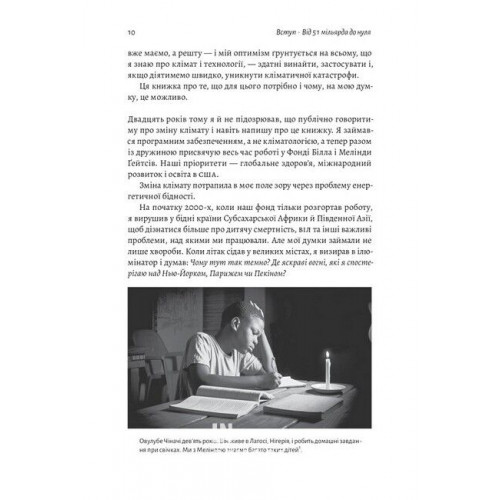 Ґейтс уже понад 10 років займається дослідженням питань зміни клімату, і ця книжка — результат його здобутків. Об’їздивши майже увесь світ та поспілкувавшись з експертами у галузі фізики, хімії, біології, техніки, політології та фінансів, він сформував свій план уникнення глобальної екологічної катастрофи. Кінцева мета цього плану — зменшення викидів вуглекислого газу в атмосферу до нуля. Це неймовірна мета, яка, на думку Ґейтса, є єдиноможливим шляхом до порятунку нашої планети.