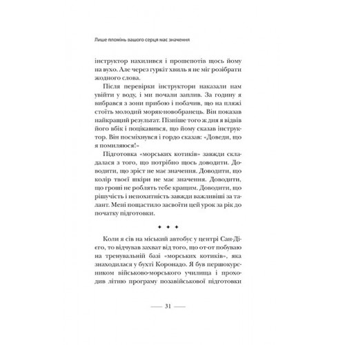 КМ-БУКС Застеляйте ліжко. Дрібниці, які можуть змінити ваше життя... і, можливо, світ. - Вільям Г. Макрейвен 978-966-948-783-4 У цьому невеличкому виданні адмірал Вільям Г. Макрейвен, командувач Військово-морських сил США у відставці, визначив десять правил, яких він особисто завжди намагався дотримуватися і які допомогли йому з честю подолати чимало життєвих негараздів. Оригінально сформульовані правила на кшталт "не боятися акул", "не вдаряти передчасно у дзвін", "щоранку застеляти ліжко" мають глибокий підтекст. Автор розкриває суть кожного правила, розповідає цікаві історії про людей, які свого часу надихали його власною дисципліною, наполегливістю, благородством і мужністю.