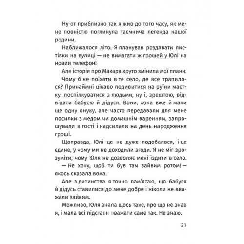 Маґура Арсен., Ірен Роздобудько 978-617-8177-44-7 Корида, привиди та криваві скарби — здається, це можливо лише в кіно. Однак, коли семикласник Арсен починає досліджувати історію свого роду, неймовірне стає страхітливо близьким. Чи зупинить це хлопця? Схоже, навіть сама Біла Пані не стане на заваді в того, хто взявся випорпати родинну таємницю з-під пилу століть.