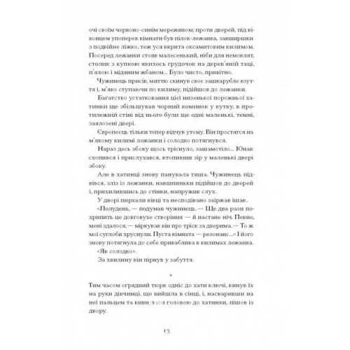 Видавництво "Ще одну сторінку" Без стерна., Олесь Досвітний 978-617-522-254-6 Олесь Досвітній (справжнє ім’я Олександр Скрипаль-Міщенко) — маловідомий і неординарний український письменник початку ХХ століття. В роки Першої світової він за поширення революційних ідей був заарештований, але зміг утекти через Киргизстан і Китай до Америки, і згодом повернувся вже до підрадянської України. Досвід подорожі, незнайомих країв заклали основу багатьох його текстів, а нові теми екзотики і східних народів хвалили й колеги-письменники, як-от Микола Хвильовий. У прозі Досвітнього проглядаються пошуки власної ролі в омріяній революції і неоднозначні почуття після неї. Навіть дрібні нотки сумнівів не залишилися непоміченими з боку радянської влади, тож письменник поповнив списки жертв Сталінського терору. До книжки входять повісті «Гюлле» й «Алай», а також оповідання «Місіонери», «На плавнях» і «Жебрачка».
