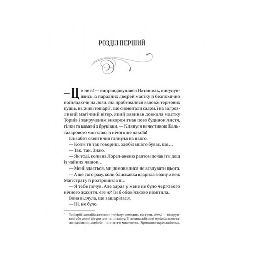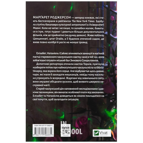 Чаклунство шипів. Книга 2. Таємниці маєтку шипів., Маргарет Роджерсон 978-617-17-0683-5 Елізабет, Натаніель і Сайлес опиняються замкнуті в магічній пастці старовинного чаклунського маєтку саме в той час, коли зобов’язані готувати міський бал Зимового Сонцестояння.Допитливі репортери оточили маєток Торнів, прагнучи назбирати пліток про наймогутнішого чаклуна міста та бібліотекарку, яка вкрала його серце. Але відбувається щось дивне: чари, які мали б захищати мешканців, невідь-чому насильно утримують їх всередині. Відрізані від зовнішнього світу, вони змушені об’єднати зусилля, щоб виявити джерело несправної магії.Старий чаклунський дім наповнений несподіванками і давніми таємницями, він вимагає особливої плати від закоханих. Елізабет та Натанієлю доведеться як ніколи покладатися на свої почуття, щоб залагодити ситуацію.